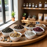 We proudly offer a curated selection of premium organic loose-leaf teas, including exceptional medicinal and herbal blends. Our diverse range features robust black, vibrant green, fragrant oolong, delicate white, soothing rooibos, and invigorating caffeine-free herbal infusions. Additionally, we provide exclusive seasonal and custom blends upon request, ensuring you always find the perfect tea to suit your tastes.